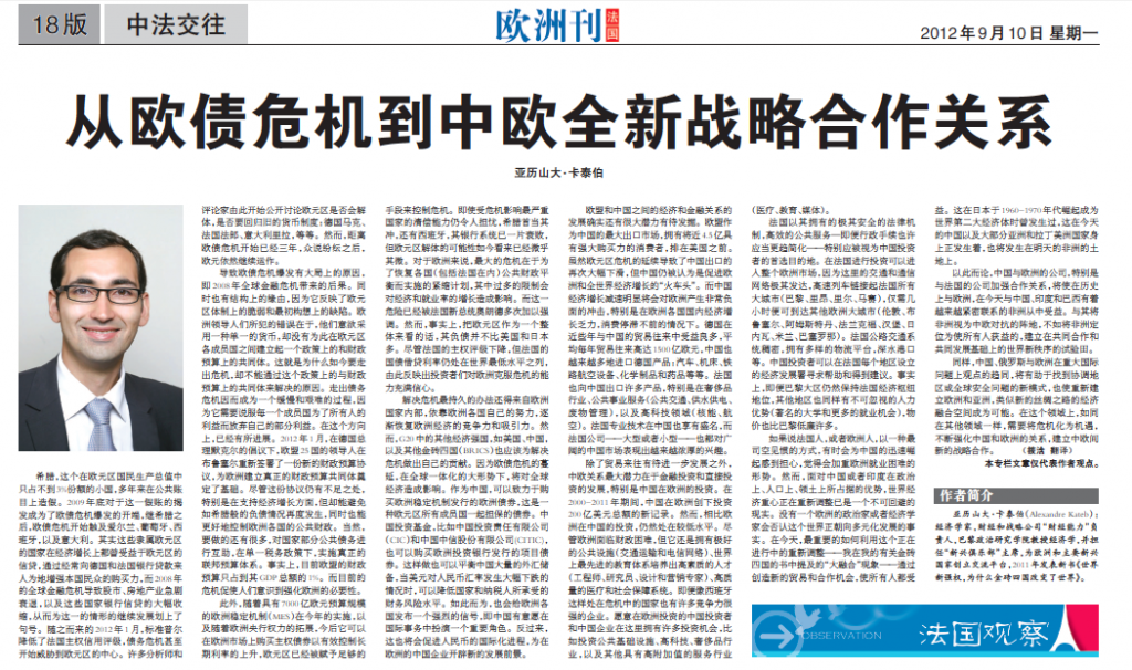 Cet article est paru en mandarin dans l’édition européenne du Quotidien du Peuple datée du 11 septembre 2012. La Grèce, un petit pays qui représente moins de 3% du PIB de la zone euro avait manipulé pendant des années ses comptes publics. La révélation de cette fraude comptable, fin 2009, a constitué le point de […]